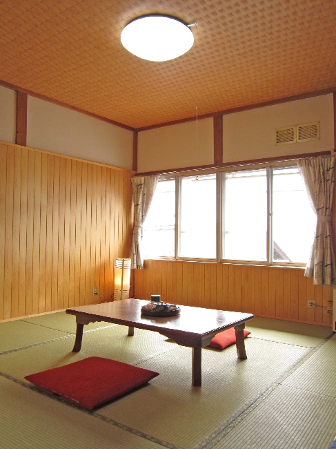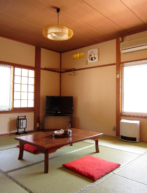 お部屋 飛騨の古民家の二階を客室に改装しました。すべてのお部屋に、飛騨を囲む名峰の名前がついています。 御岳 乗鞍 薬師岳 お部屋の指定はできません。予めご了承ください お茶 テレビ 照明器具 ガスファンヒーター 全室フリーWi-Fiあります。 冷暖房完備、テレビ、浴衣、半てん(冬期のみ)、タオル、ハブラシ、カミソリあり。 布団はご自身で敷いていただいております。身長の高い方にも安心な長めの布団です。 備え付けの清潔なシーツをご利用ください。 足元の寒い方は電気アンカの貸し出しをしています(冬期のみ)。 トイレ・浴室は共同のものをご利用ください。